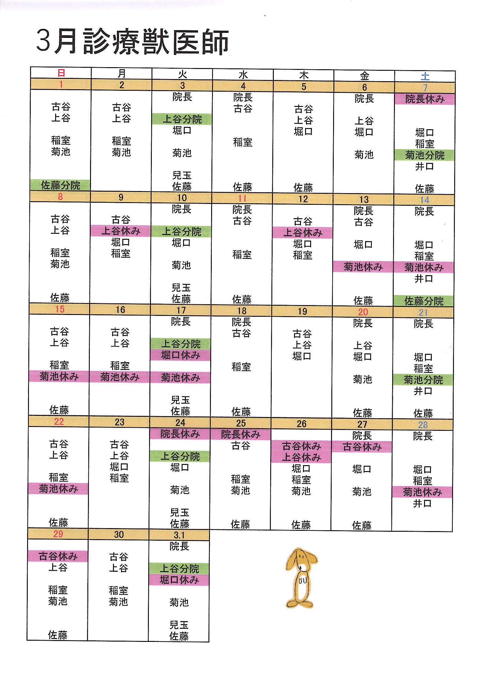 3月診療獣医予定表