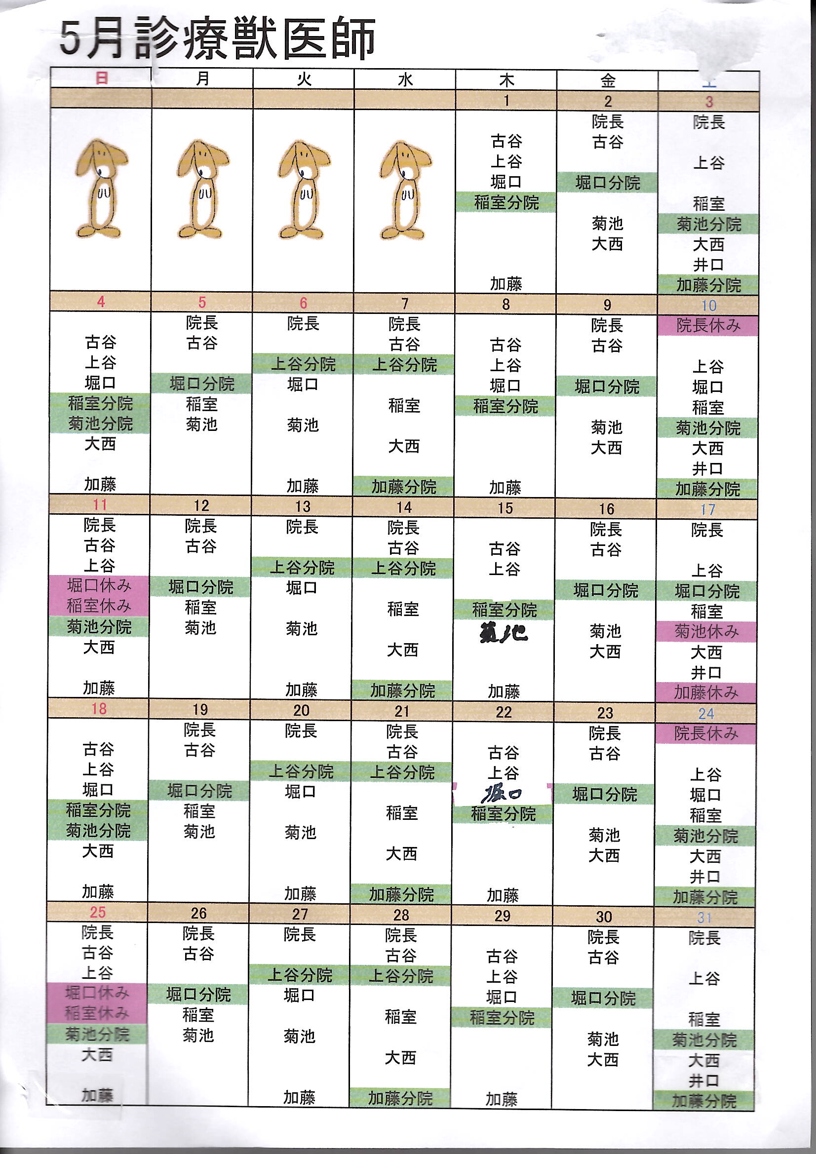 分院は4月からしばらくの間 毎日診察いたします。水・土・日曜は獣医師が二人体制になりますので予約が取りやすくなっています。