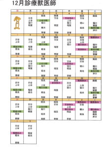 12月診療獣医予定表