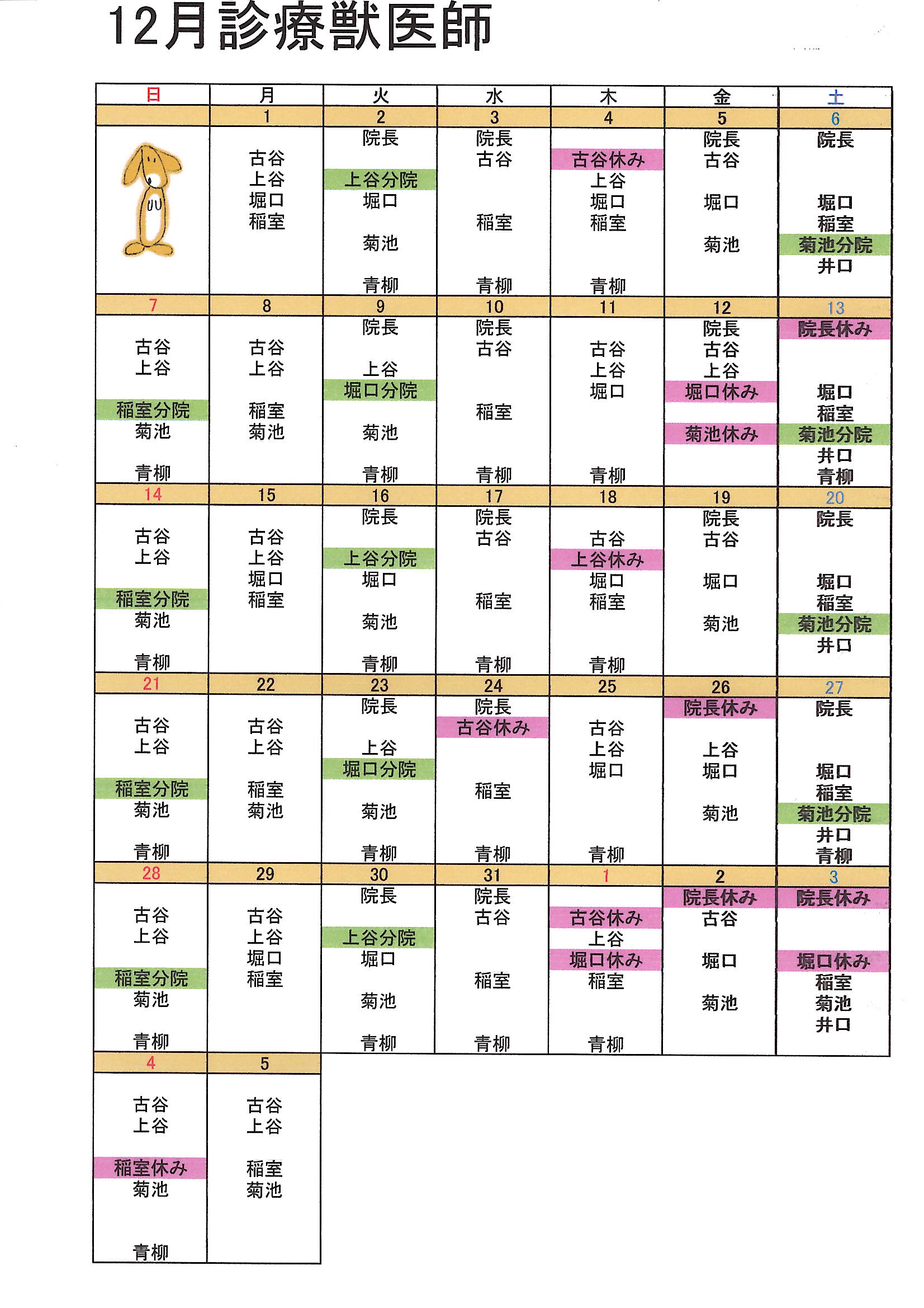 12月診療獣医予定表