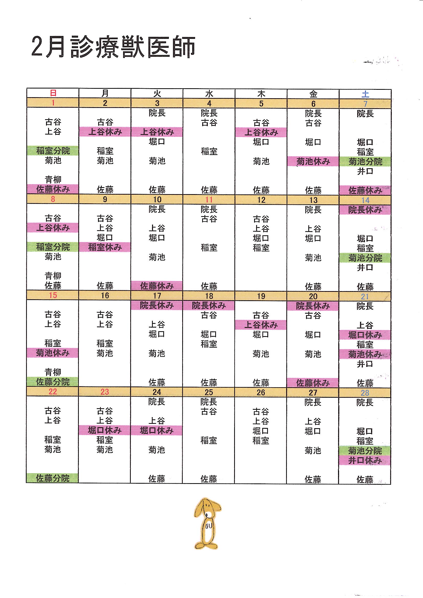 2月中の分院は診察日が少なくなっています。ご迷惑をおかけしております。ご確認の上予約をしていただくようお願いいたします。